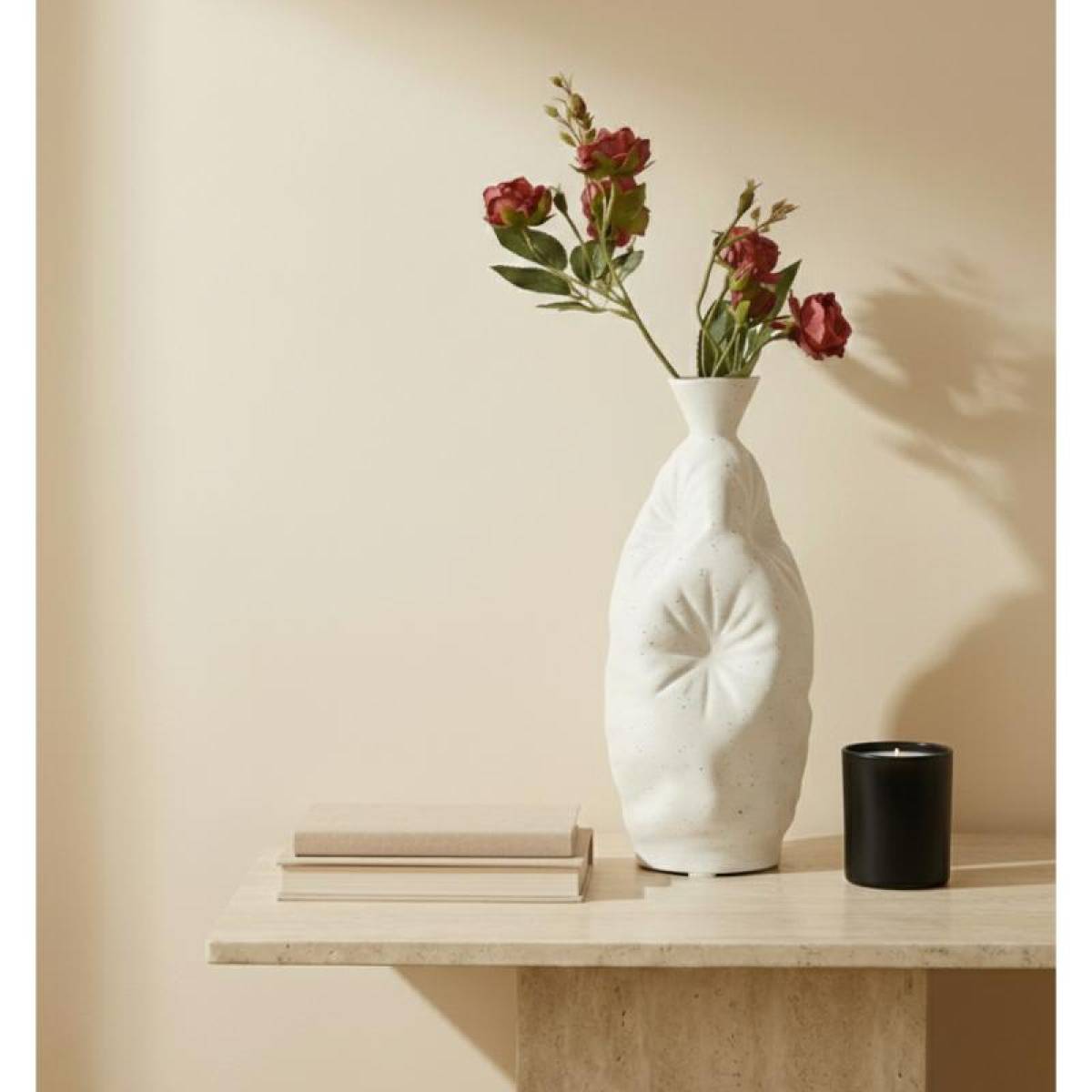 White Textured Ceramic Decorative Vase 30 Cm Height, Sk872